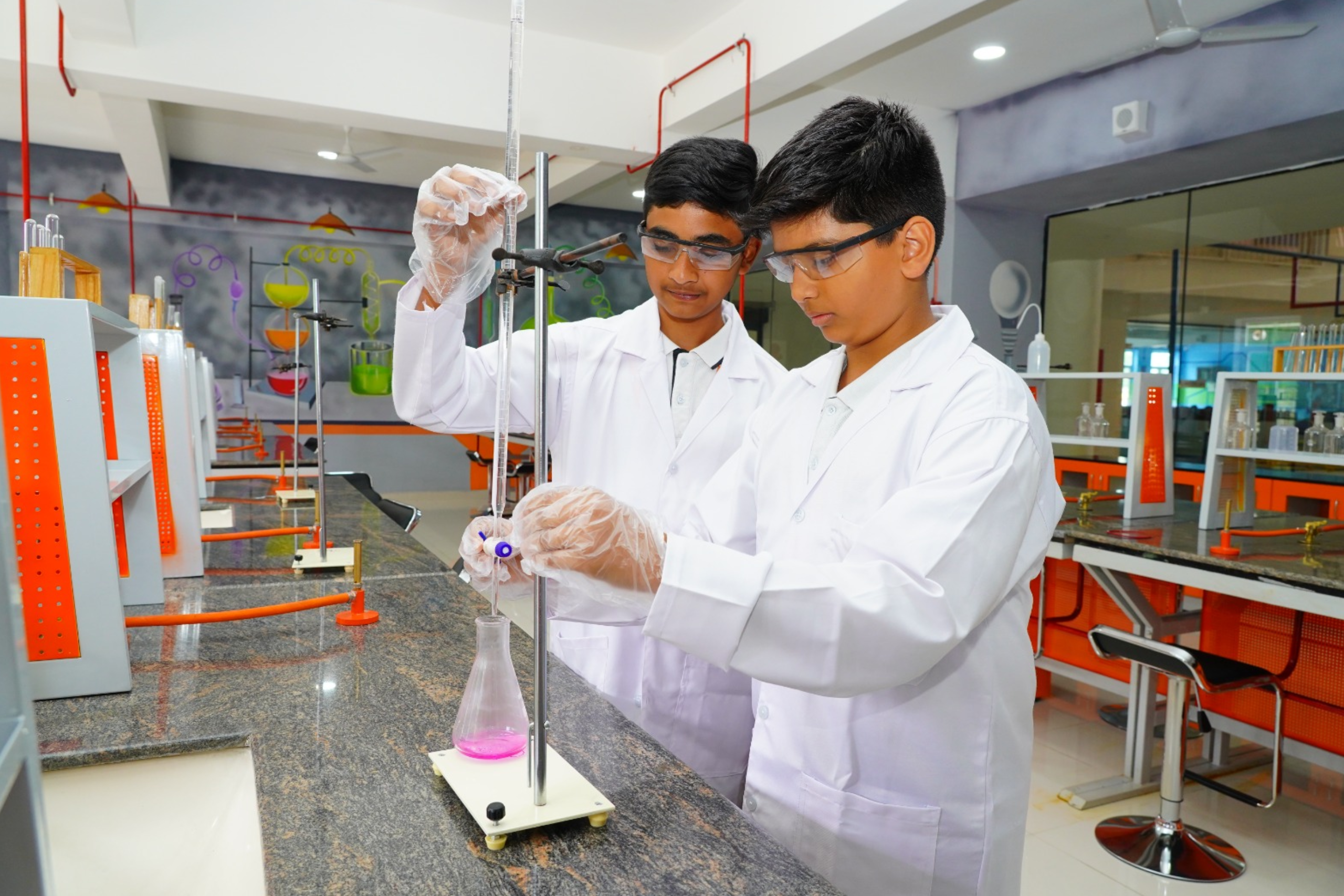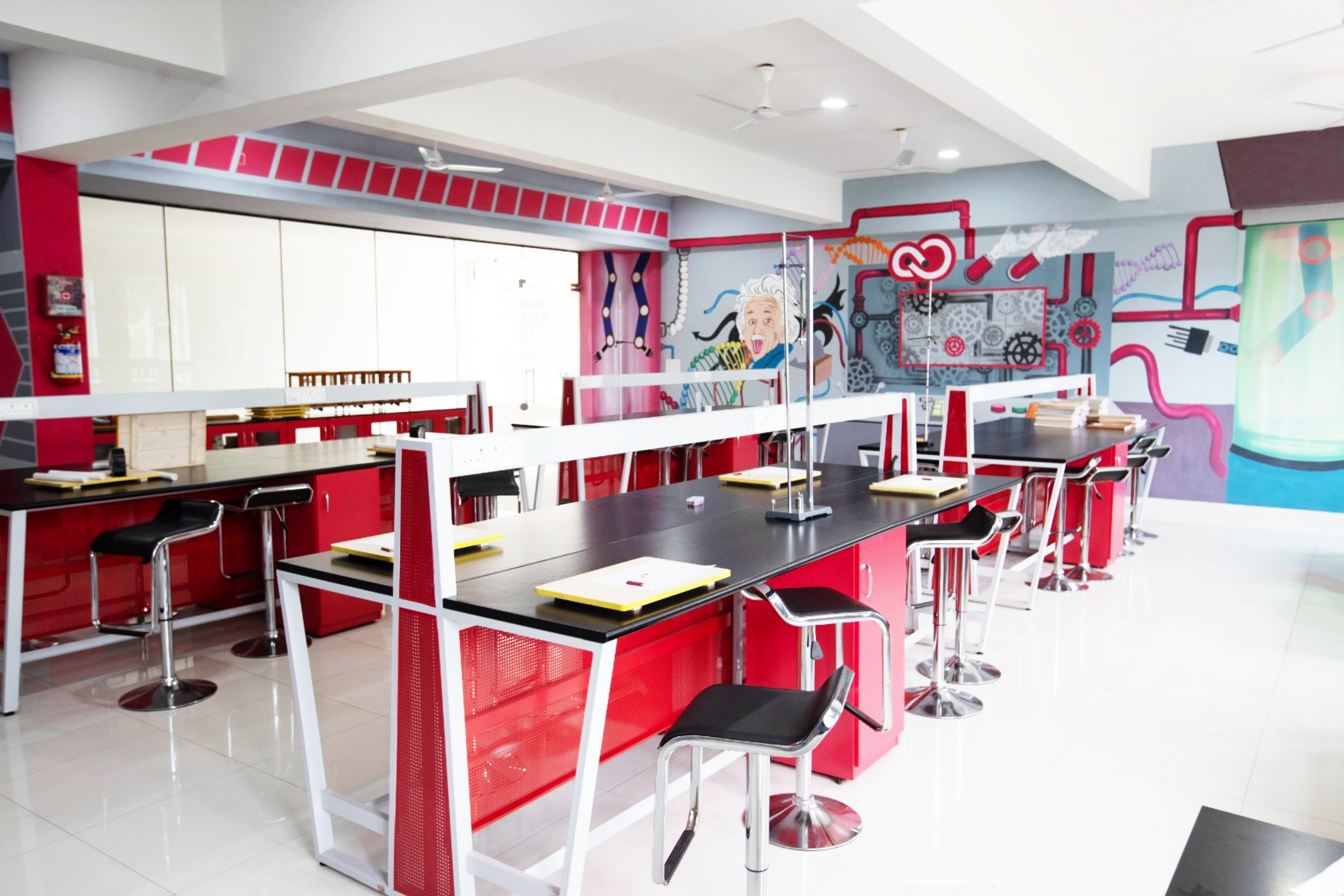 Our Science Lab is a place where our students can experiment with, learn, develop and conceptualize different scientific ideas. We use a pedagogy where the students are stimulated to apply the knowledge they have gained in the classroom in the laboratory. It not only helps students learn the real life application and importance of theories but will also develop in them a natural kinship towards STEM. An ideal ambience and tools are provided to encourage students to dig deeper and innovate something new.