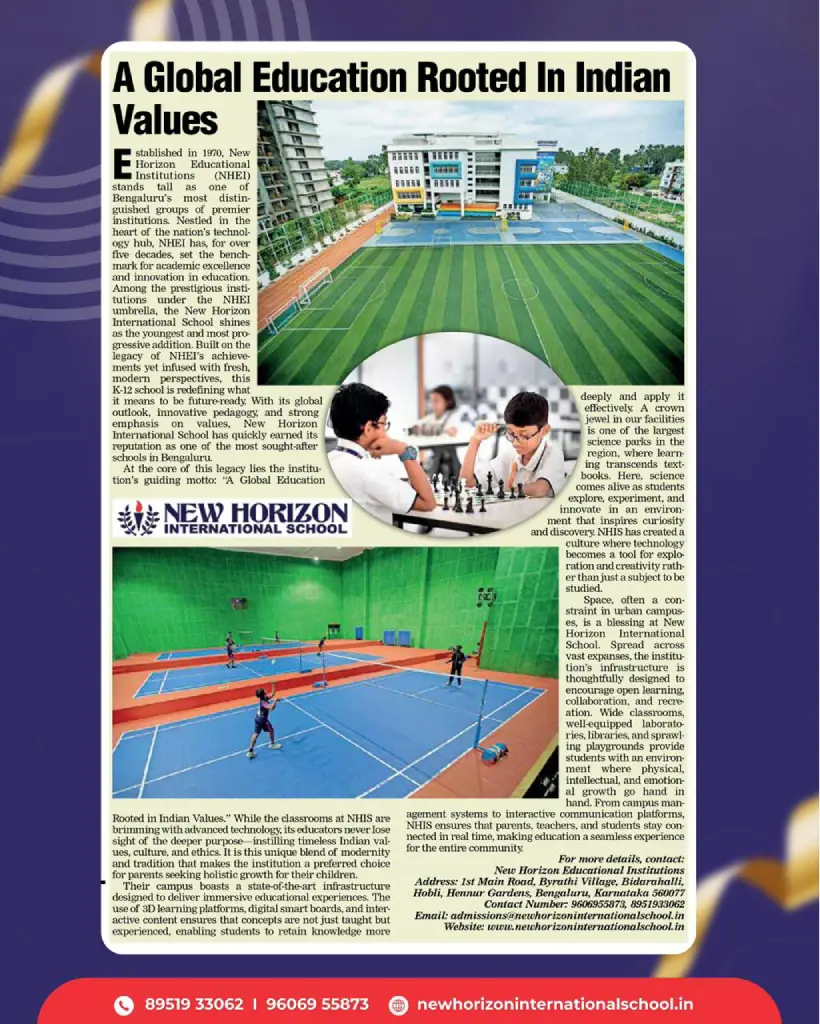 With a stellar record of 50 years of excellence in the field of education, New Horizon Group of Institutions is proud to announce the inception of its’ new school, “New Horizon International School”.